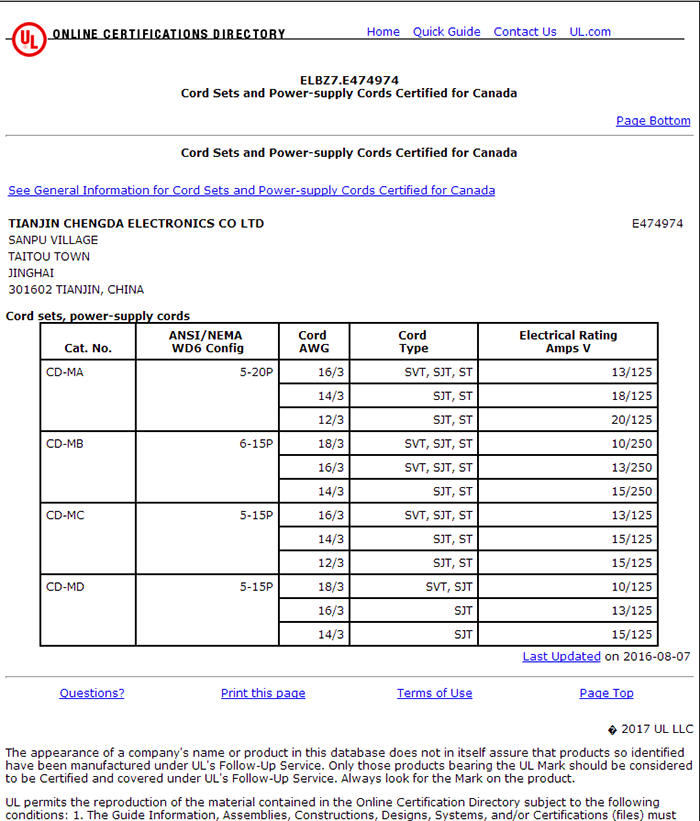 CD-MA 125V 13A 配线 ST SJT SVT 16AWG×3C